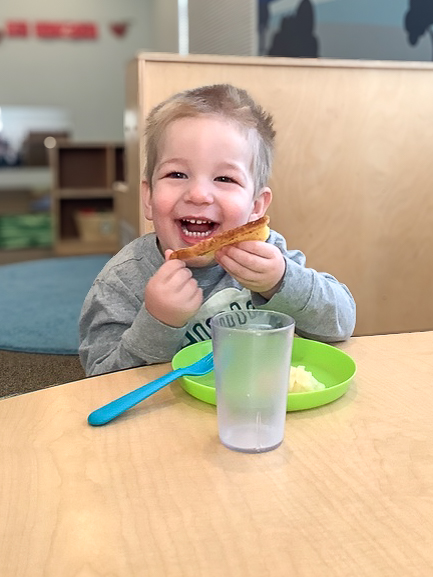 Meals are served family-style, so children receive initial portions and can ask for more. Children are encouraged to serve themselves if they are able to do so. Teachers sit at the table with the children during mealtimes to model healthy eating and encourage proper table manners. All meals begin with a non-denominational prayer. Children are encouraged to participate in prayer; however, they are never forced to do so.