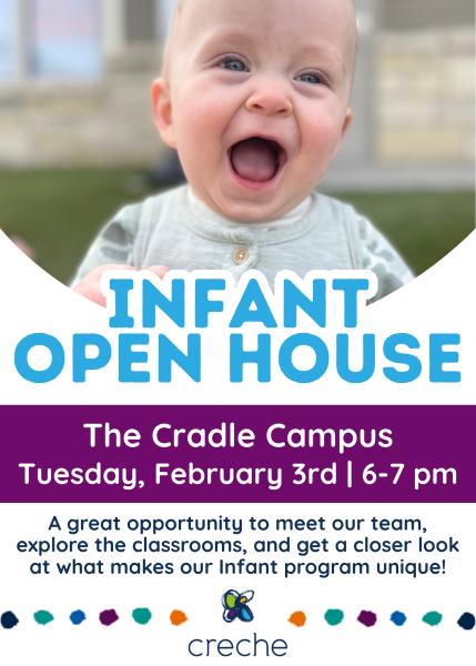 We are excited to invite you to our infant open house at The Cradle campus on Tuesday, February 3rd, 6-7pm! This special event is open to our currently enrolled infant families, as well as new families in our community who are beginning their search for loving, high-quality infant care.